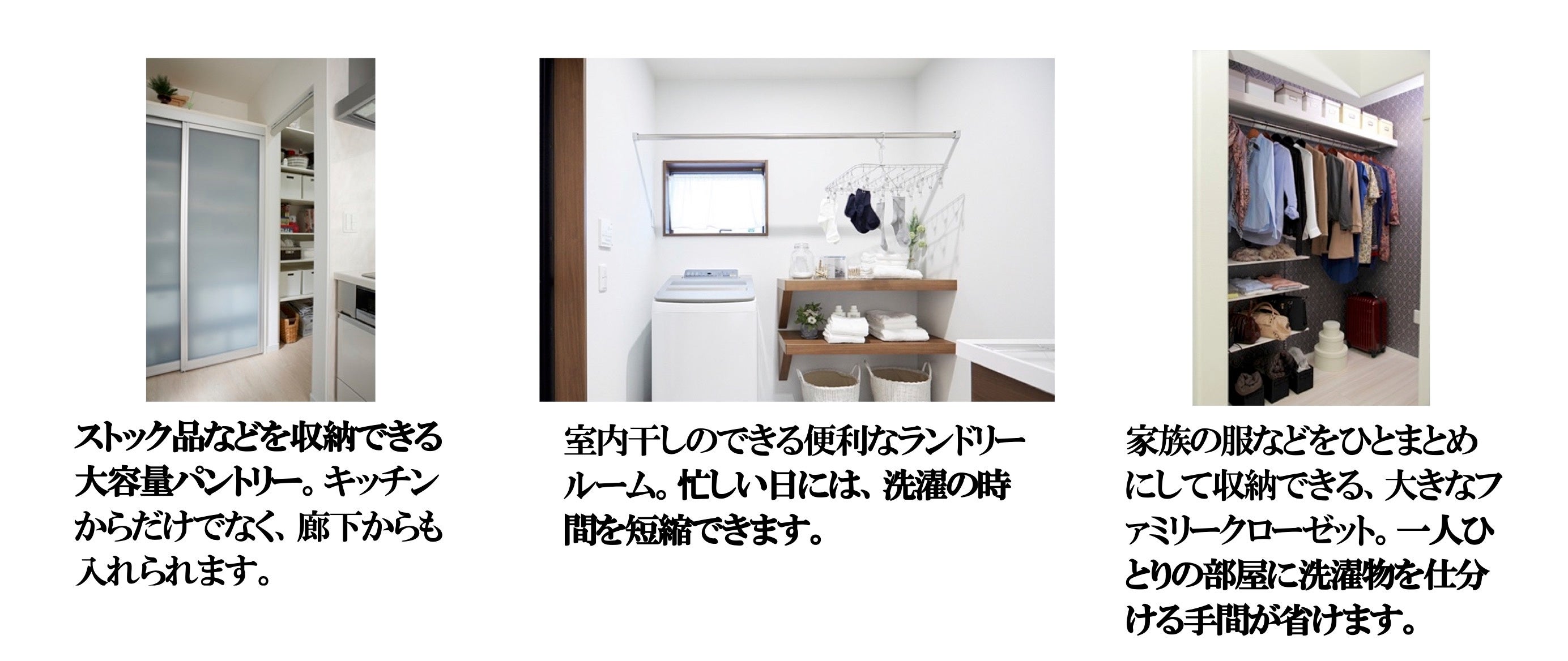 今回の調査では、、ご家庭で時短家事がうまくいくために必要なことのトップは、家族全員の時短家事への協力となっています。家族全員に無理なく時短家事に協力してもらうためにも、最も効率的に無駄のない動線を考えて設計することも重要です。