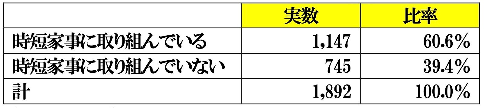 本調査を実施する前に「自宅で時短家事に取り組んでいる方」を抽出するために事前調査を実施し、1,892名から有効回答を得ました。調査時期:2023年1月20日、調査方法、調査会社は本調査と同様です。