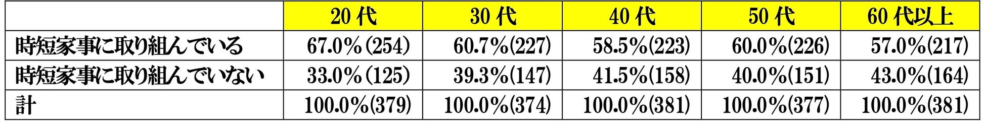 ● 時短家事に取り組んでいる20代が67.0%、30代が60.7%と平均以上になる(事前調査から)