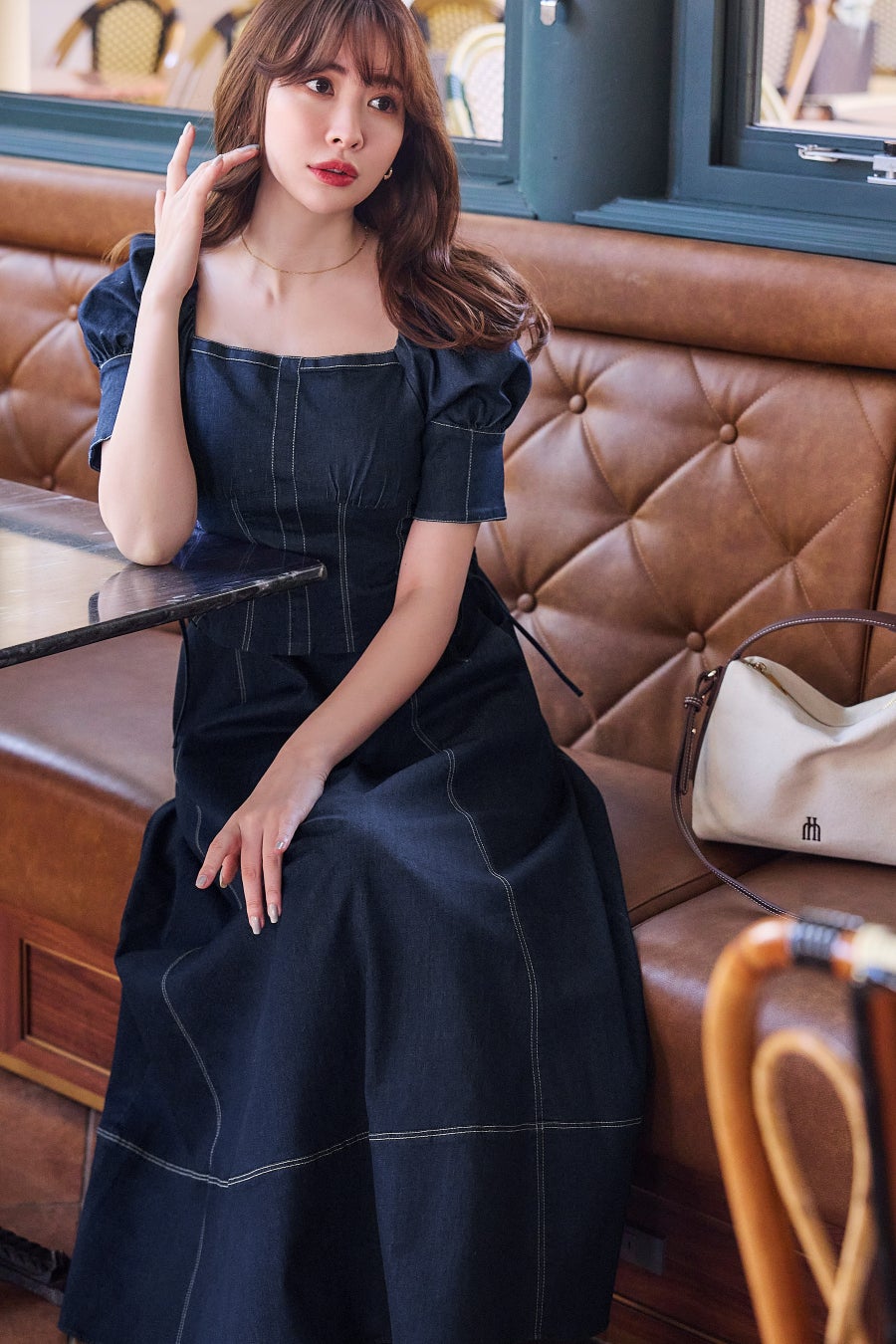 Eze Puff-Sleeve Denim Dress ¥26,000 tax in