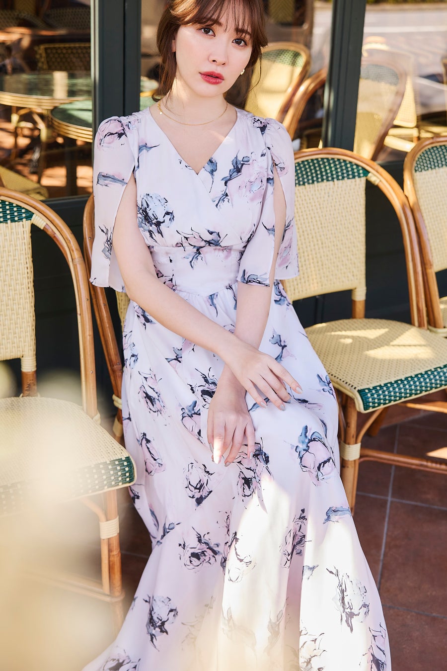 春の訪れを予感させるキービジュアルのフローラルドレスは、流れるような美しいシルエットが、優美な雰囲気を纏う一着。
