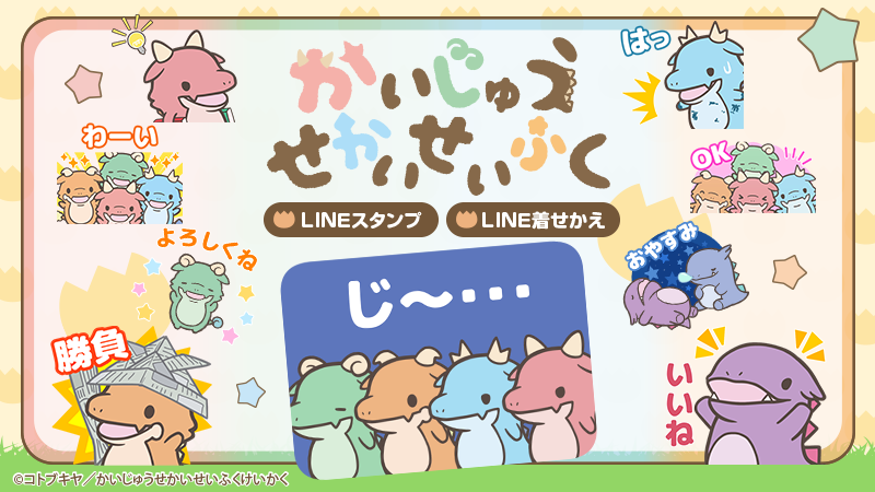LINEスタンプ『かいじゅうせかいせいふく』(40点 100 コイン/250 円)