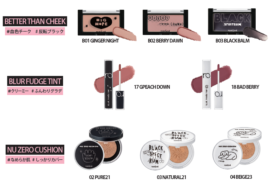 日本では2019 年にティントリップ「ロムアンド ジューシーラスティングティント」を販売開始し、ティントリップブームの先駆けとなりました。以後、カラーメイクアップからベースメイクまで、コンスタントにヒット商品を生み出しています。