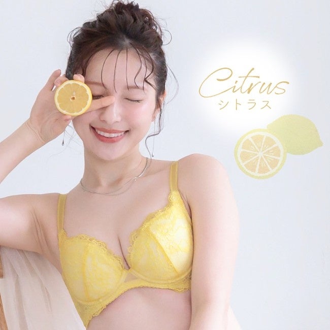 鮮やかでありながら肌馴染みのよい、ロマンティックなレッドトーンの「ストロベリー」、陽の光を浴びたようなフレッシュさ、クリアで生き生きとした「シトラス」は、いずれもエネルギーに満ちたブライトカラー。主役の色が引き立つよう、レース下地はオフホワイトで統一されています。