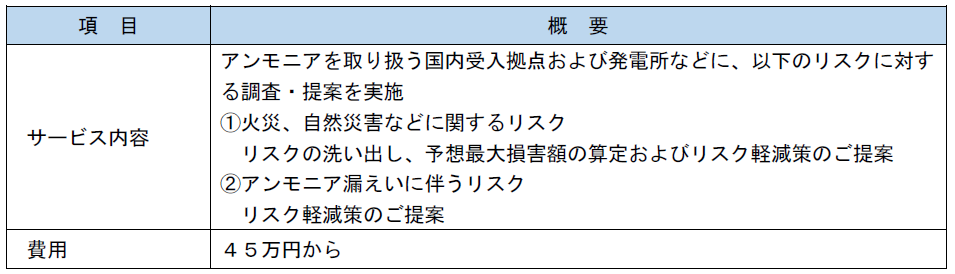 「アンモニア輸送専用保険」【国内初】の開発、アンモニアを取り扱う施設のリスク調査サービスの提供