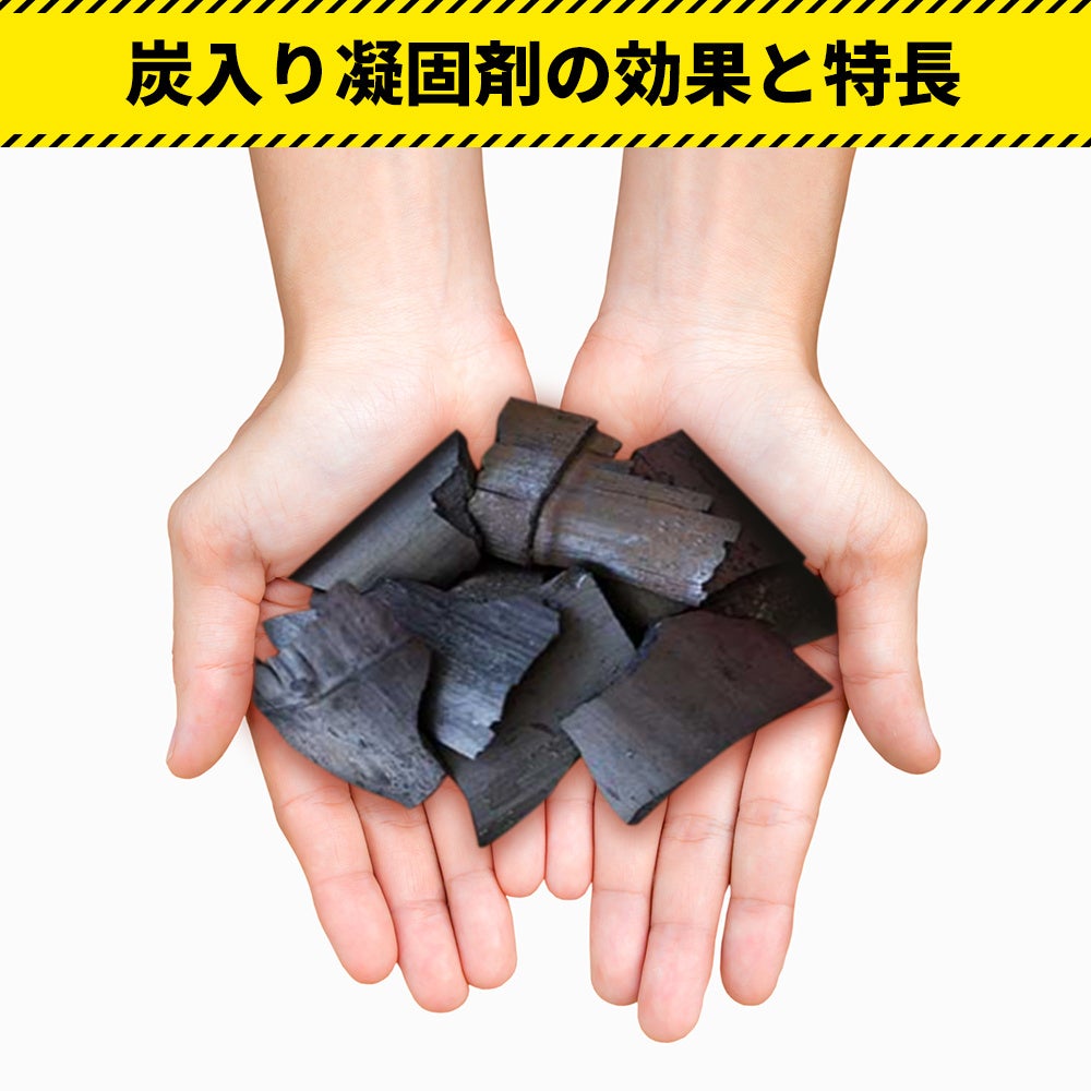 炭入り凝固剤の吸収ポリマーがしっかりと固めて、抗菌と消臭を同時に行います。