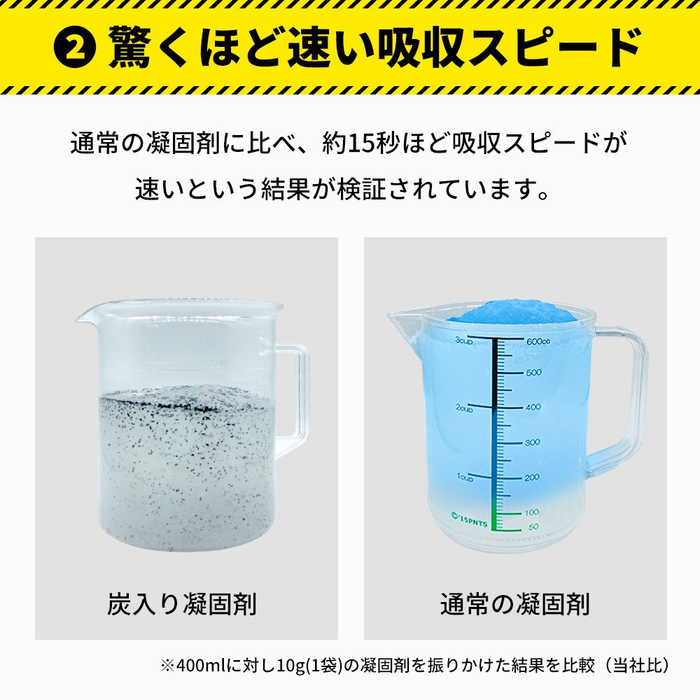 炭の力による、通常の凝固剤を凌駕する消臭力と吸収スピードがこの商品の大きな特長です。