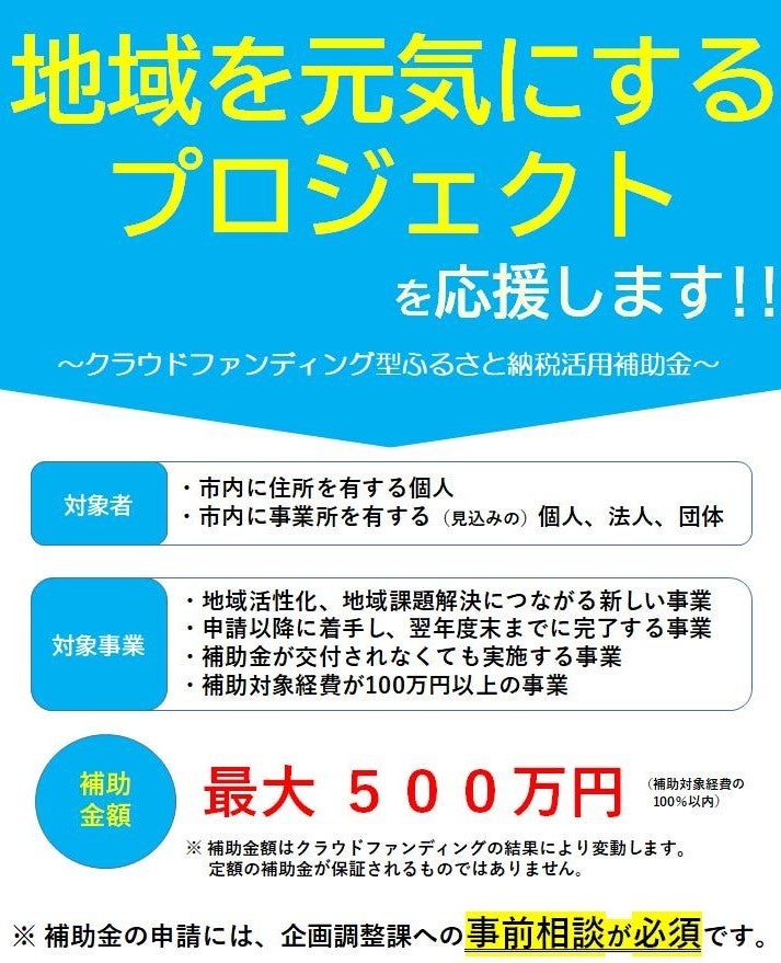 ※ 補助金額はクラウドファンディングの結果により変動します。