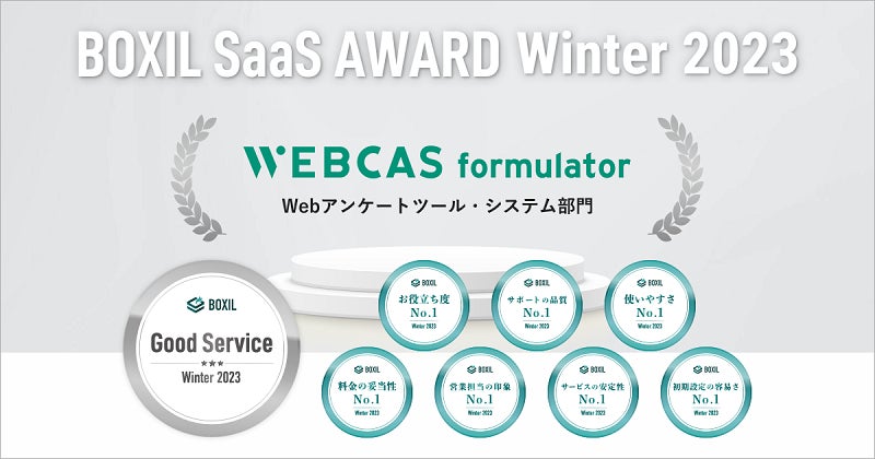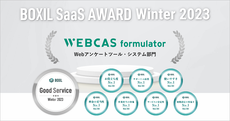アンケート・フォーム作成システム「WEBCAS formulator」が「BOXIL SaaS AWARD Winter 2023」で「Good Service」に選出