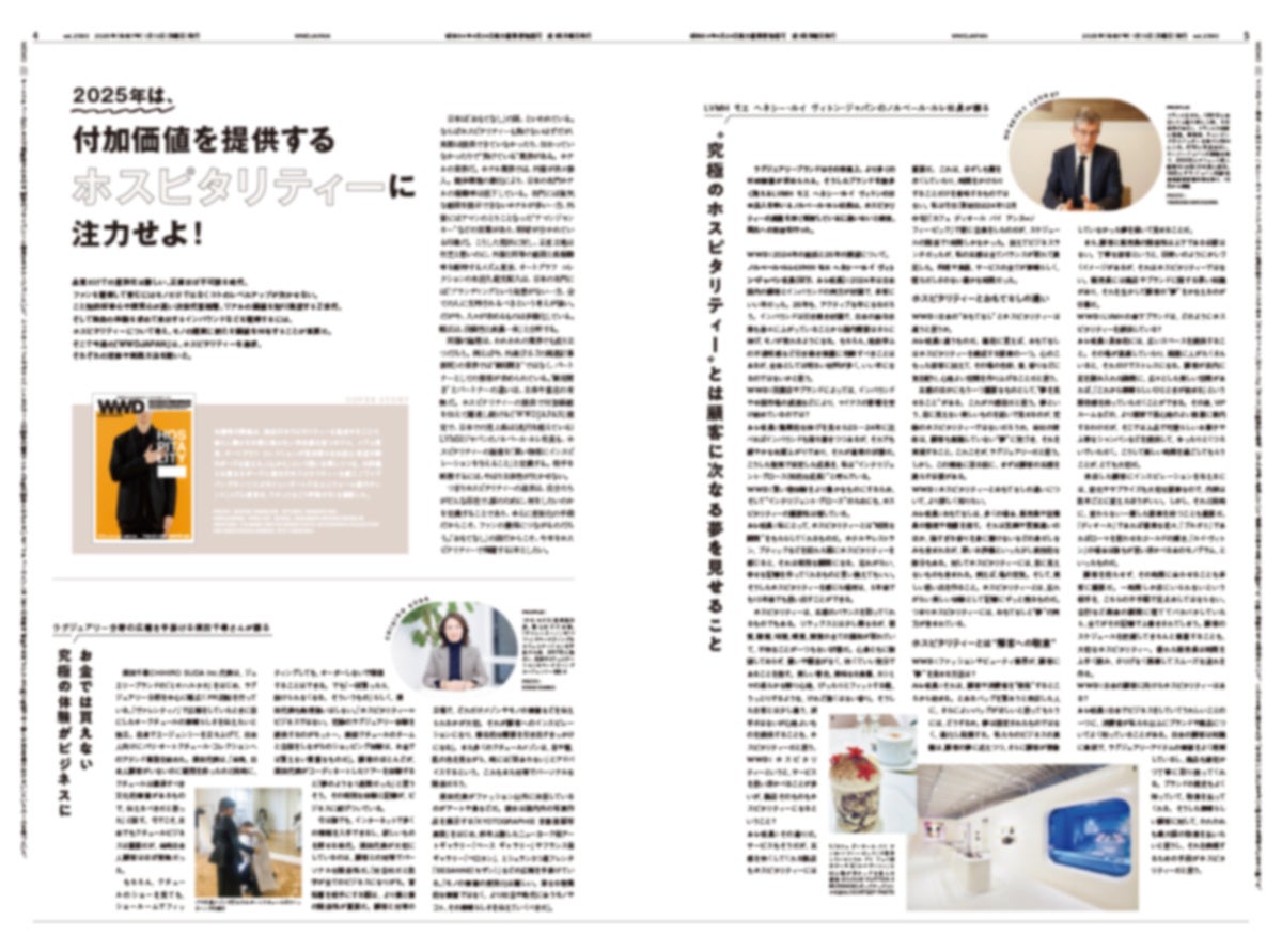 1月13日発売の「WWDJAPAN」は、ホスピタリティーを特集します。品質だけでの差別化が難しくなっている時代、ファンを獲得して育むにはコトのレベルアップが欠かせません。特に知的好奇心や探究心が強い次世代富裕層や、リアルの価値を知り渇望するZ世代、独自の体験を求めて来日するインバウンドら、ファッション&ビューティ業界が注目する消費者を獲得するには、ホスピタリティーについて考え、モノの購買を付加価値で増幅することが大切です。そこで今週号は、ホスピタリティーを追求。それぞれに定義や実践方法を聞きました。