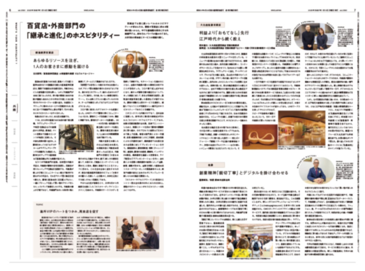 阪急阪神、大丸松坂屋、そして松屋には、百貨店・外商部門による「継承と進化」のホスピタリティーを伺いました。顧客の理想が高いからこそ、高いレベルのホスピタリティーが求められる百貨店、中でも富裕層を相手にする外商部門は、そのビジョンや哲学、そしてノウハウをどのように磨いているのでしょう?大手3社の担当者にサービスの極意を伺いました。さらには、業界で日々ホスピタリティーを実践・体現している18人のトップ販売員にも、それぞれの「ホスピタリティー」を伺いました。ロープレ大会の優勝者から、売り上げを伸ばし続けるプロ、そしてファンが遠方から駆けつけるスター販売員まで、それぞれの「ホスピタリティー」の定義と、象徴するエピソードには胸が熱くなります。