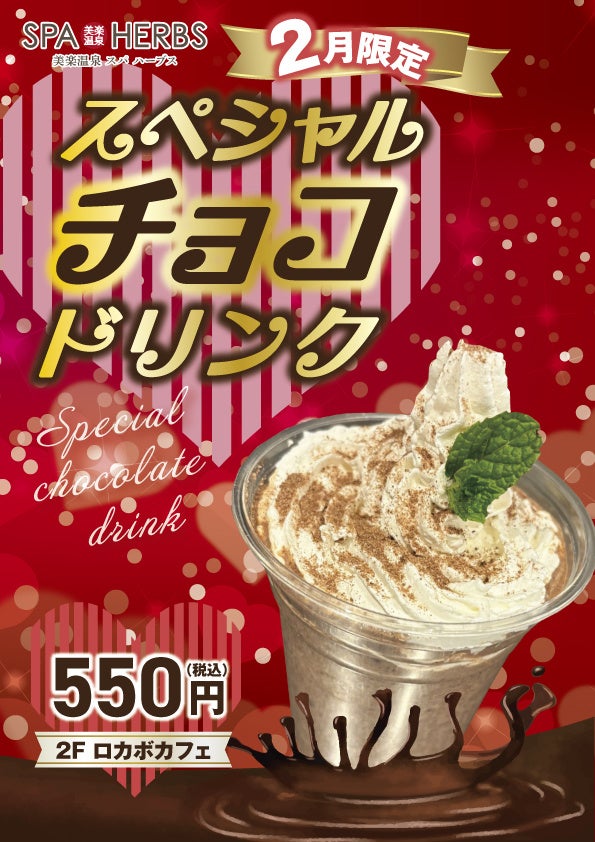 2階のロカボカフェにて2月限定でスペシャルチョコドリンクを販売いたします。