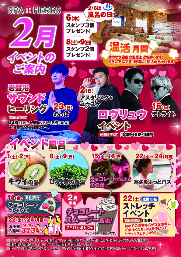 2月のイベント風呂はバレンタインにピッタリのお風呂も登場!