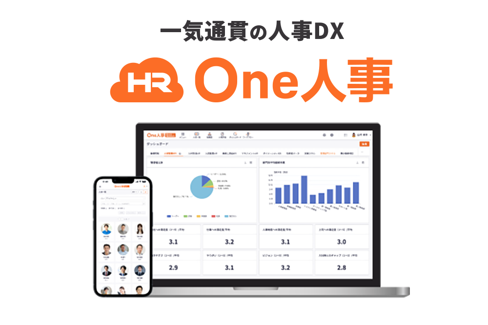 「One人事」は、労務管理、勤怠管理、給与計算、タレントマネジメントまで一気通貫で人事DXをサポートします。