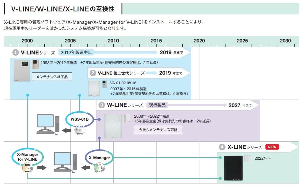 XA-08は、扉(8ゲート)の入退の管理を行います。出入口に設置するリーダーにより、利用者の入退許可/制限の認証を行い、電気錠を制御します。