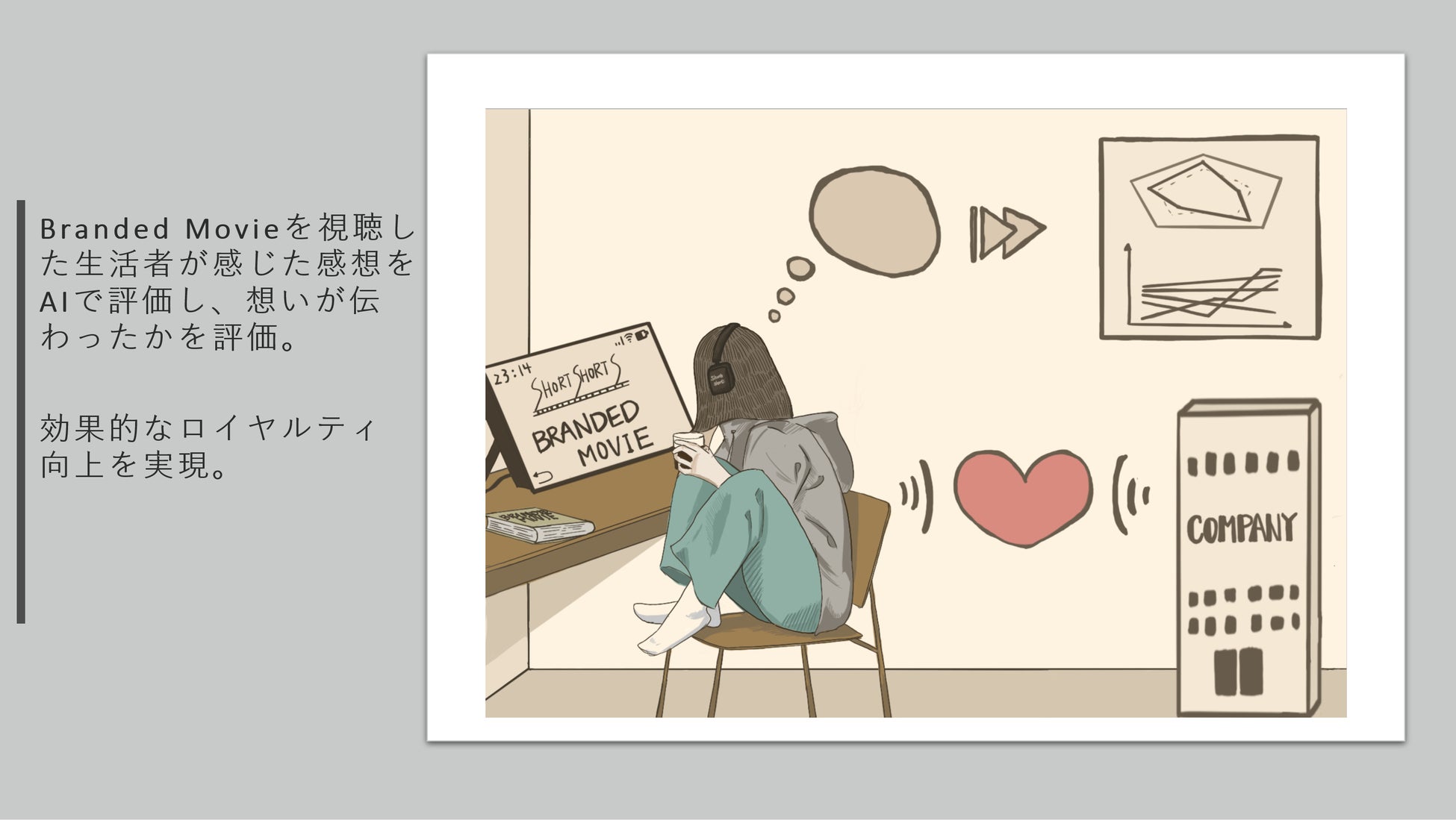 一方で、映像作品を企画する段階で「コンセプト通りの構成・脚本等になっているのか」、そして映像作品を制作した後に「コンセプトがユーザー(生活者等)に響いたのか」の判断が主観に委ねられ曖昧となってしまうとの課題があるとの認識に至りました。これはBranded Movieの効果を確認し、価値を拡げていく上で大きな制約となると考えました。