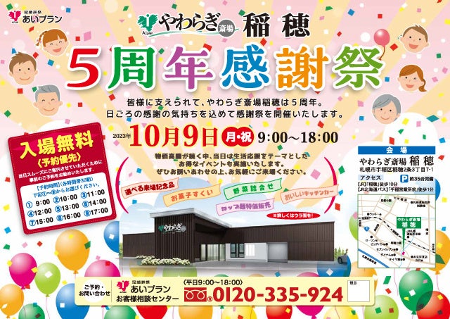 皆様に支えられて、やわらぎ斎場 稲穂は5周年。日ごろの感謝の気持ちを込めて感謝祭を開催いたします。