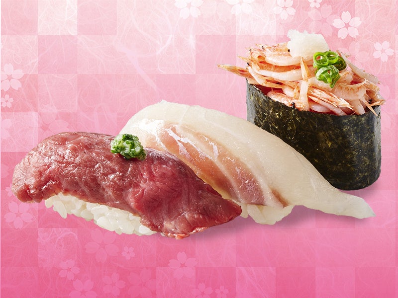 春の食材として、柔らかな「桜肉(馬肉)」を使用したにぎりや月見軍艦や軽やかな食感の「桜海老」、脂ののった「桜鯛」など、桜にちなんだ彩り豊かなメニューをご用意いたしました。