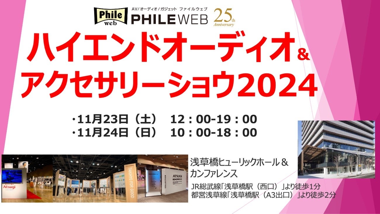 今年開設25周年を迎えたAV、オーディオ、デジタルガジェットの情報サイト「ファイルウェブ」と、約50年の歴史をもつピュアオーディオ専門誌「季刊 オーディオアクセサリー」、音元出版の2大専門メディアがタッグを組んでお届けする「ハイエンドオーディオ&アクセサリーショウ2024」。オーディオ好きの方々、オーディオにまだ触れたことのない方々の、たくさんのご来場をお待ちしています。