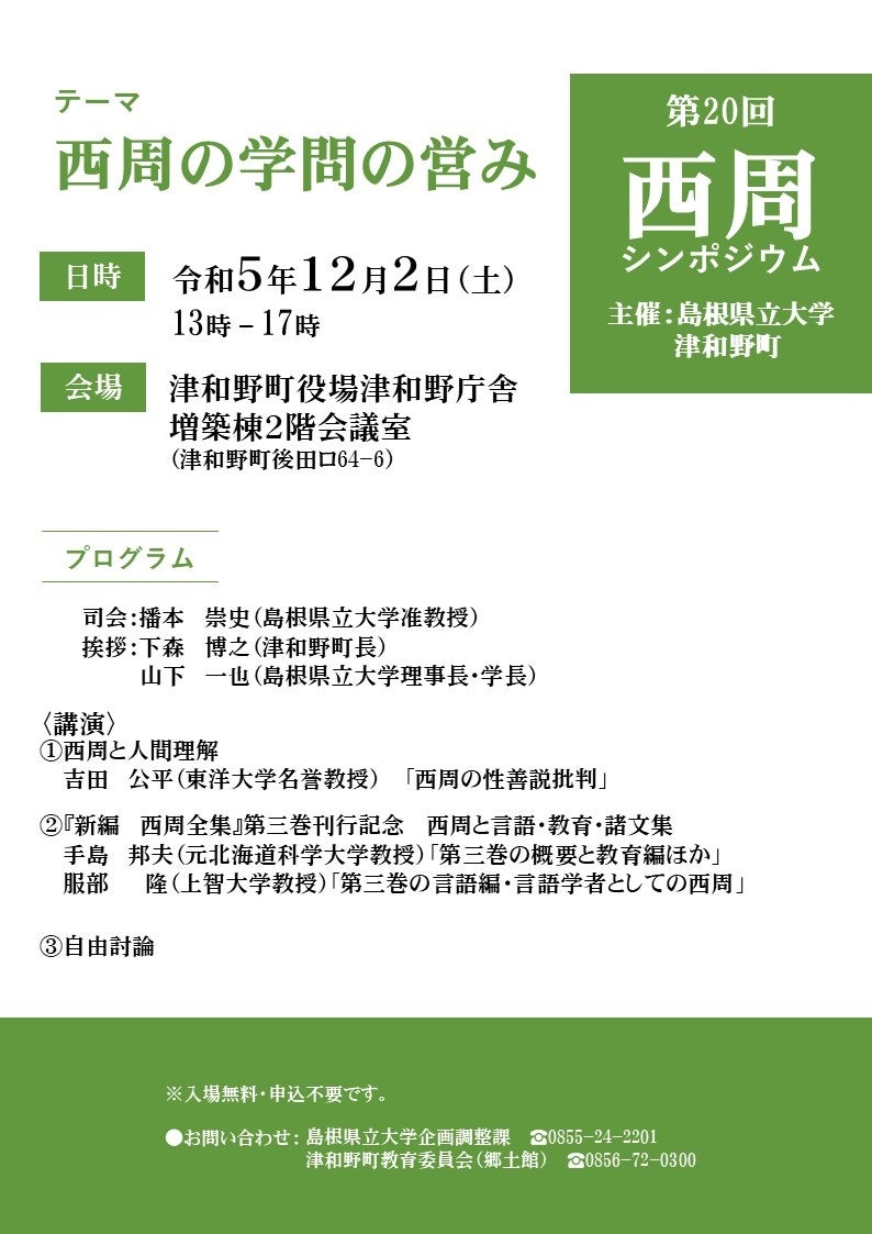 「第20回西周シンポジウム」を12/2(土)に開催します【島根県立大学】