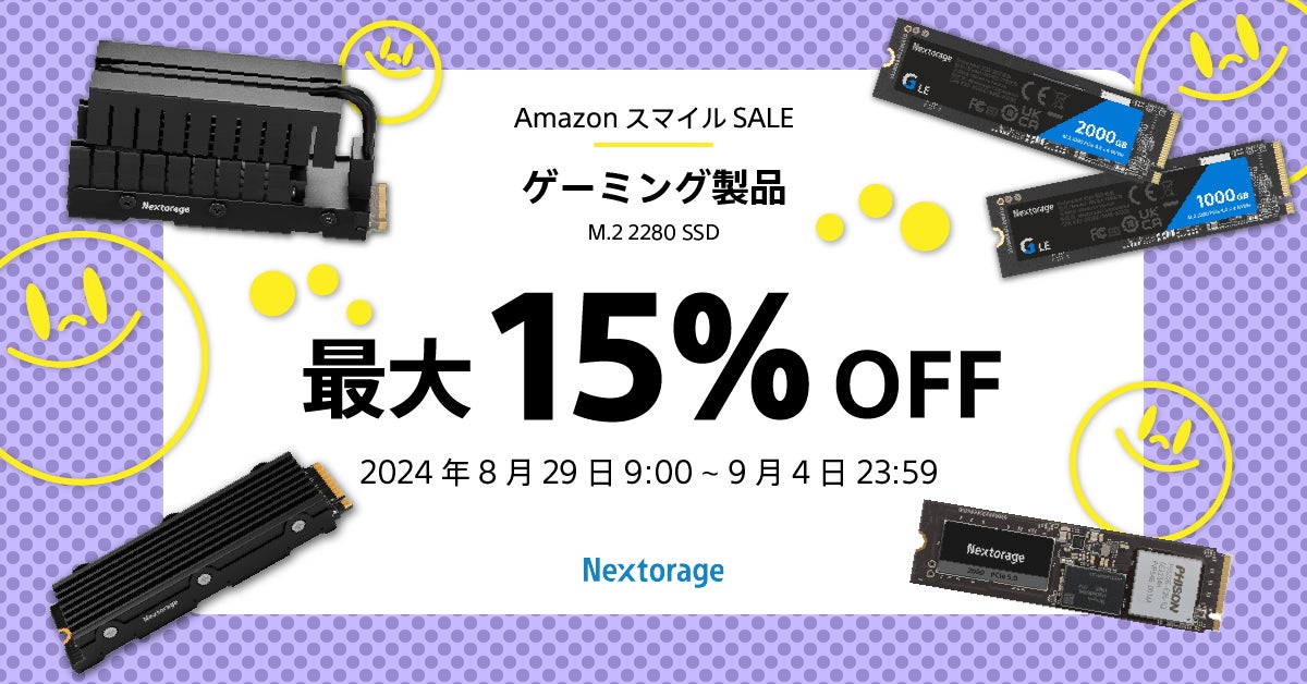 Nextorage株式会社(ネクストレージ株式会社、代表取締役:本多 克行、神奈川県川崎市)は、Amazonで8月29日(木)9:00から9月4日(水)23:59にかけて開催されるAmazon スマイルSALEに参加することをお知らせいたします。