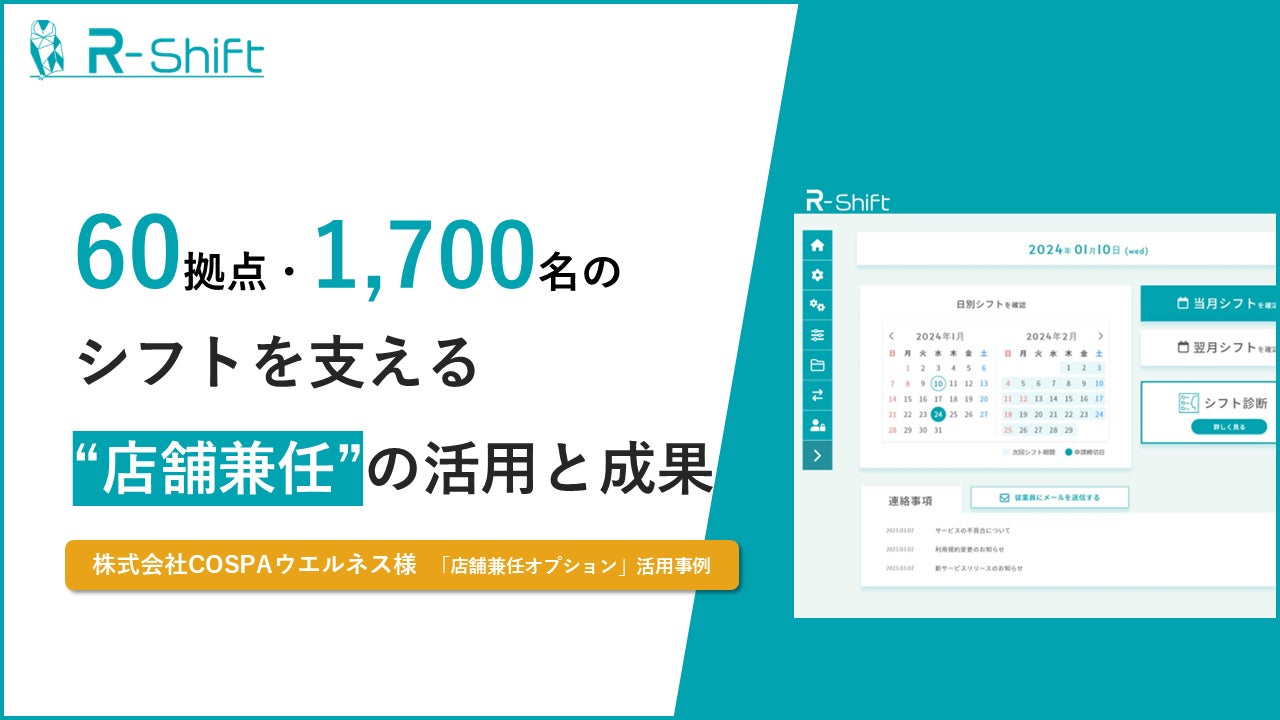 フィットネスクラブを運営する株式会社COSPAウエルネス様(本社:大阪府)は、戦略的に複数の店舗をまたいで勤務する兼務スタッフの増加させています。しかし、それに伴う課題として、兼任スタッフのシフト管理の複雑化という問題を抱えていました。そこで同社は、シフト管理システム「R-Shift」の「店舗兼任オプション」を導入。これにより、兼務スタッフの勤務状況を店舗・本部双方で一元的に把握できる体制を構築しました。結果として、電話やメールでの確認作業が大幅に削減され、シフト作成に関わる負担軽減と運営効率の向上を実現しています。