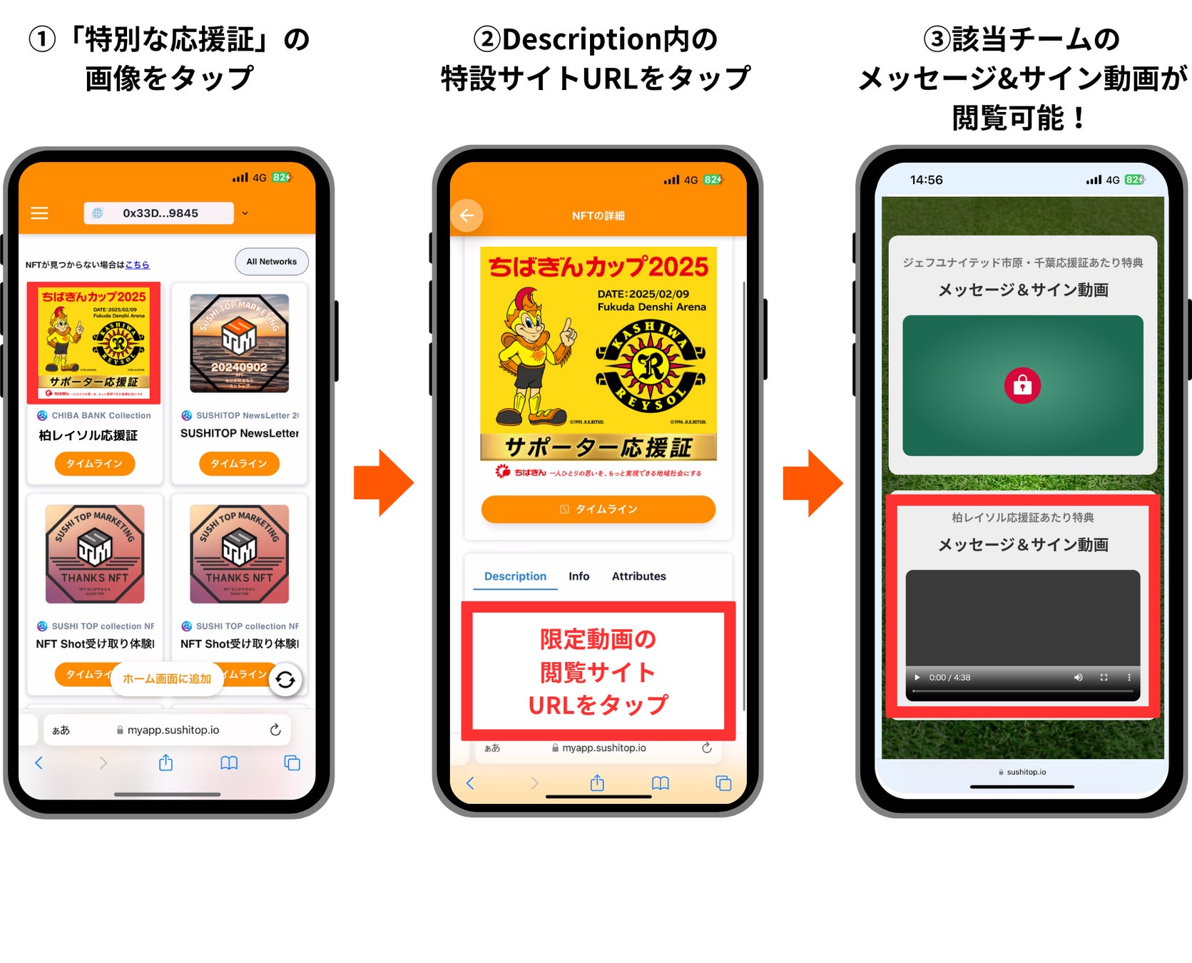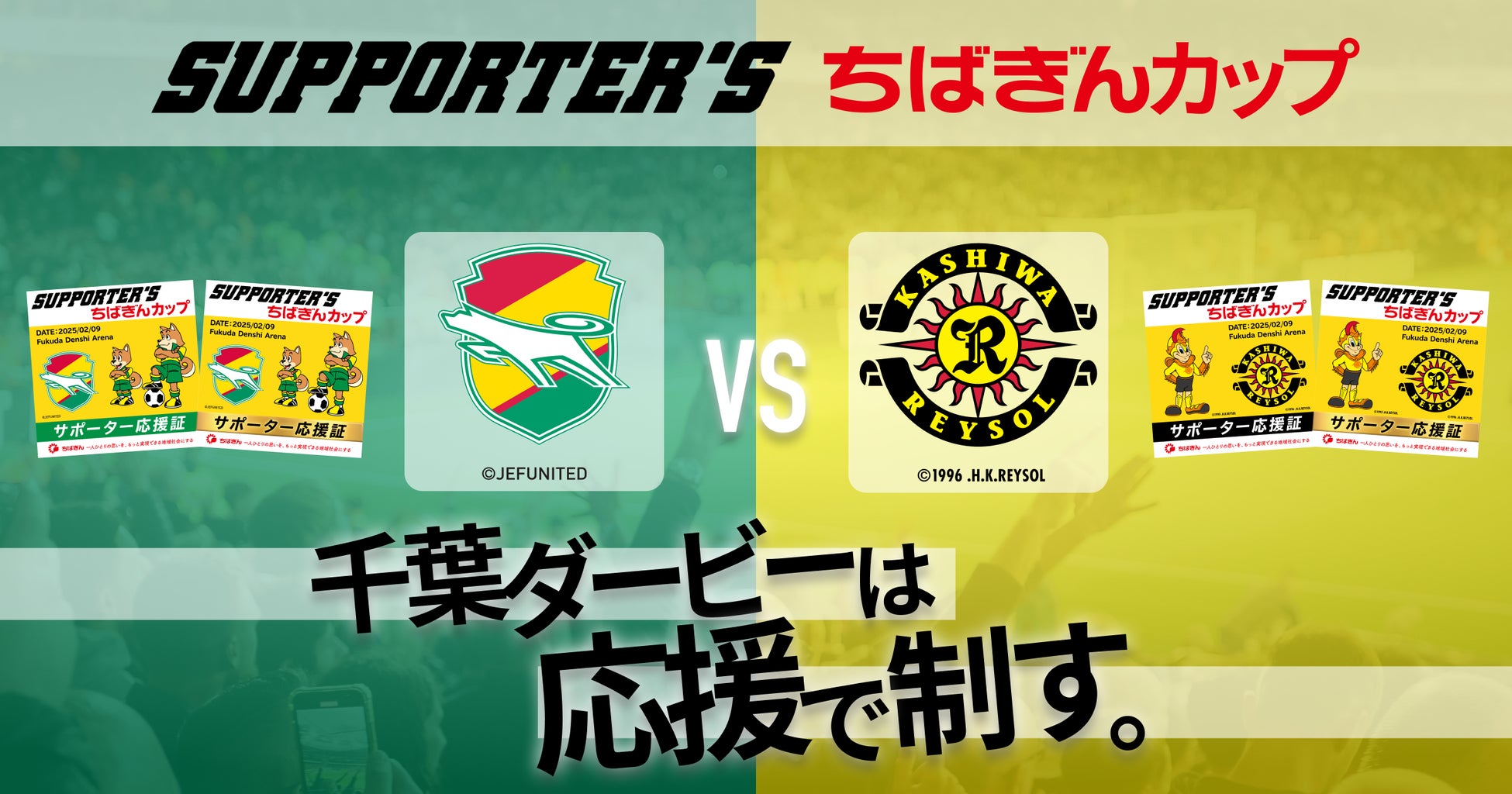 本企画では、「ちばぎんカップ」で対戦するジェフユナイテッド市原・千葉と柏レイソルへの応援の証を、NFTの技術を活用した「応援証」として本企画限定で発行し配布します。