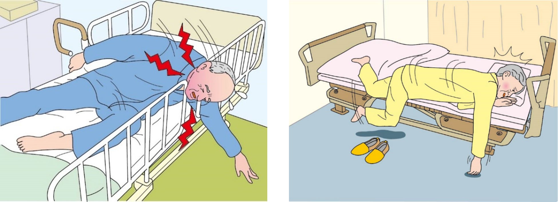 介護ベッド周りの挟み込み死亡事故のイメージ 介護ベッド周りの転落重傷事故のイメージ