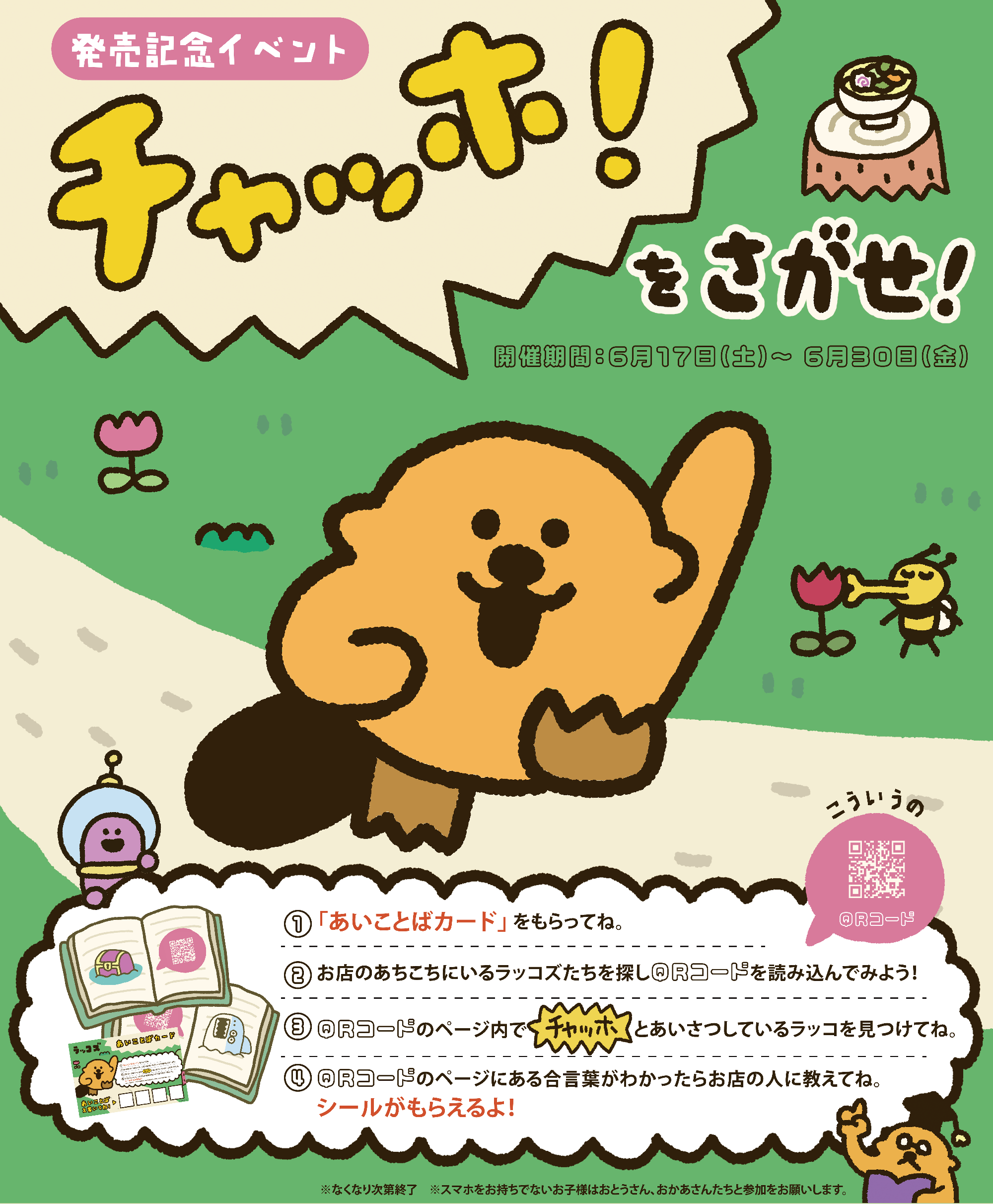 店舗内に隠されたQRコードの中から正解のものをみつけた方にノベルティステッカーをお渡しする「チャッホ!をさがせ!」を実施するほか、「ラッコズ」缶バッジづくりのワークショップなど関連イベントの開催を多数予定しています。