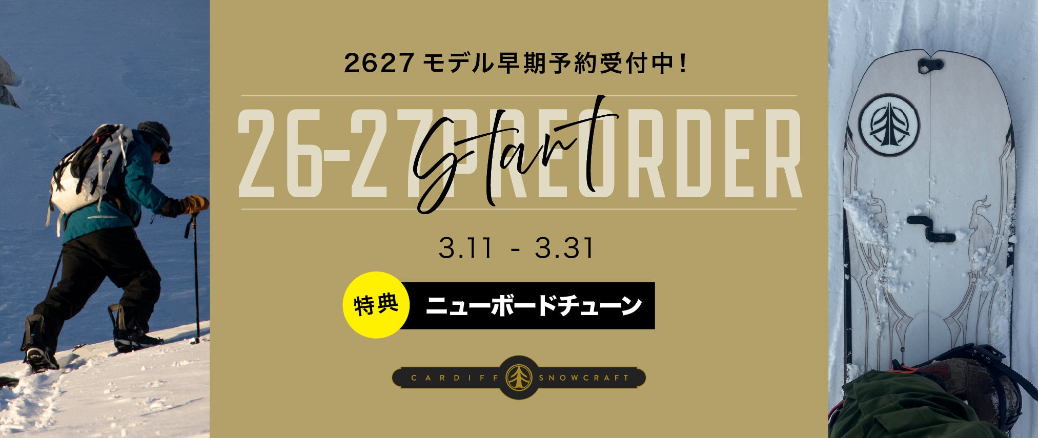 今回の早期予約では、Black Diamond製スキンとプロによるニューボードチューンを組み合わせた「即戦力パッケージ」を用意しています。