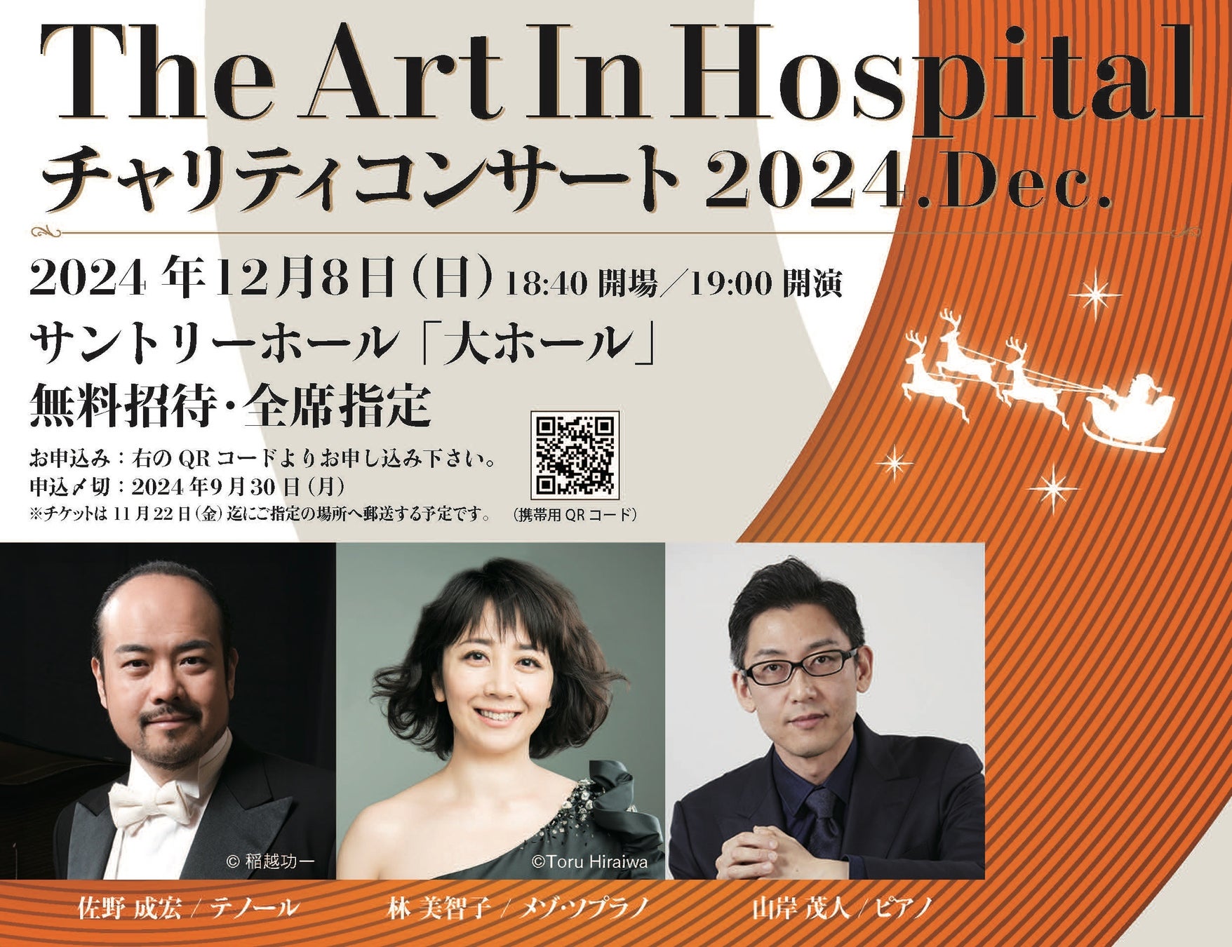来たる12月8日(日)19時00分より「集中医療大賞2024」「集中医療大賞 髙久史麿特別賞2024」「癒しと安らぎの環境賞2024」の授賞式に続いて開催するチャリティコンサートに、日本のオペラ界を牽引するテノール・佐野成宏氏、メゾ・ソプラノ・林美智子氏、ピアニスト・山岸茂人氏の出演が決定致しました。