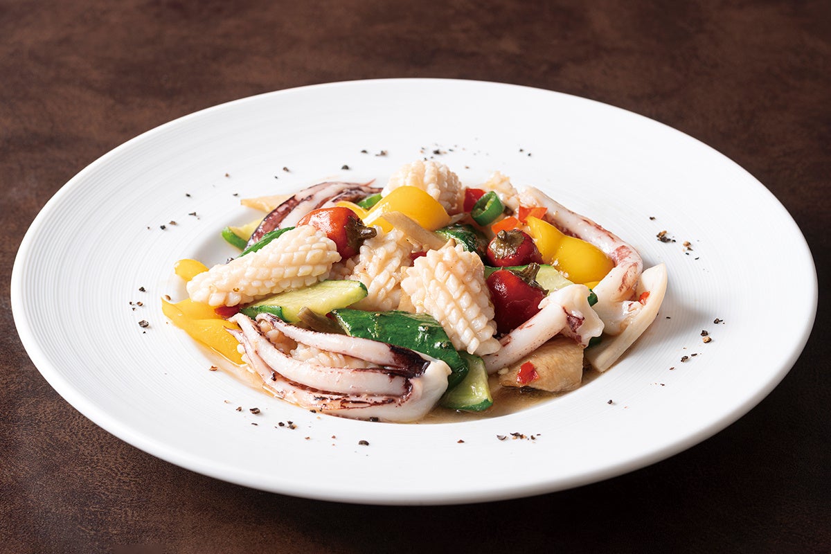 〈辛さレベル2〉自家製発酵唐辛子を使用し旨味と酸味、辛味が絶妙に調和した一品。発酵唐辛子ならではの奥深い風味が、旬のスルメイカの甘みを引き立てます。辛さの中にほのかな酸味が感じられる、四川ならではの味わいをどうぞ。