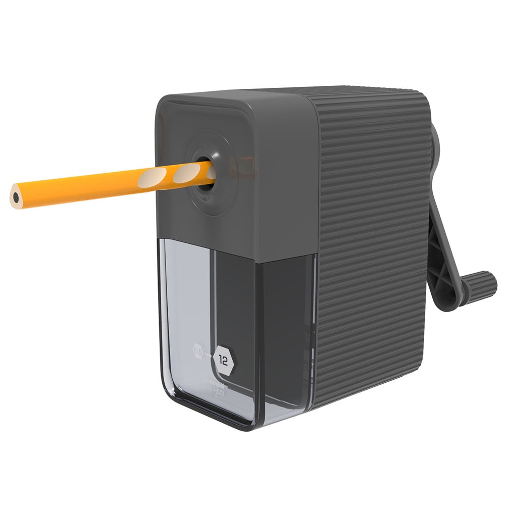 ・ 直径6.5mmの細い鉛筆から12mmまでの太い鉛筆に対応したハンドル式の手動鉛筆削り
