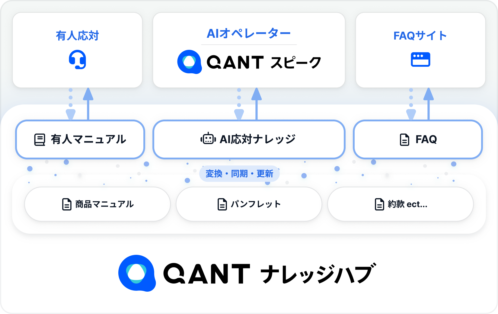 今回、カスタマーサポート業務に関わるナレッジデータの共通基盤「QANT ナレッジハブ」を新たに開発しました。これにより、カスタマーサポート業務で蓄積される応対データや知見を、AIオペレーターをはじめとするあらゆる顧客接点でも活用できるようになります。