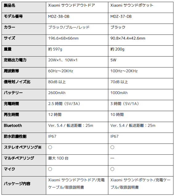 Xiaomi サウンドアウトドアとXiaomi サウンドポケット は、Xiaomiとして日本初のポータブルBluetooth スピーカーです。