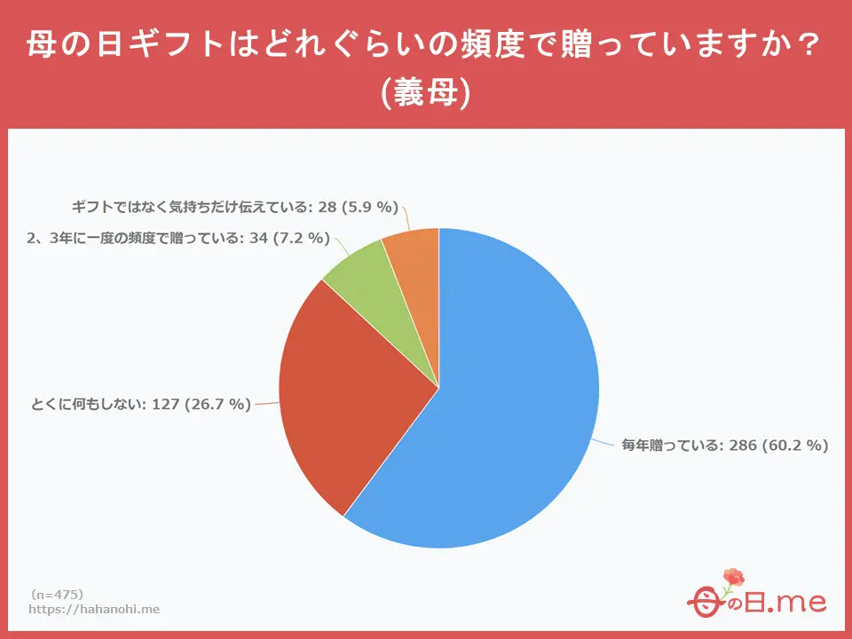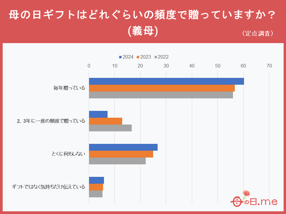 義理のお母さんへの母の日ギフトは、どれぐらいの頻度で贈っていますか?