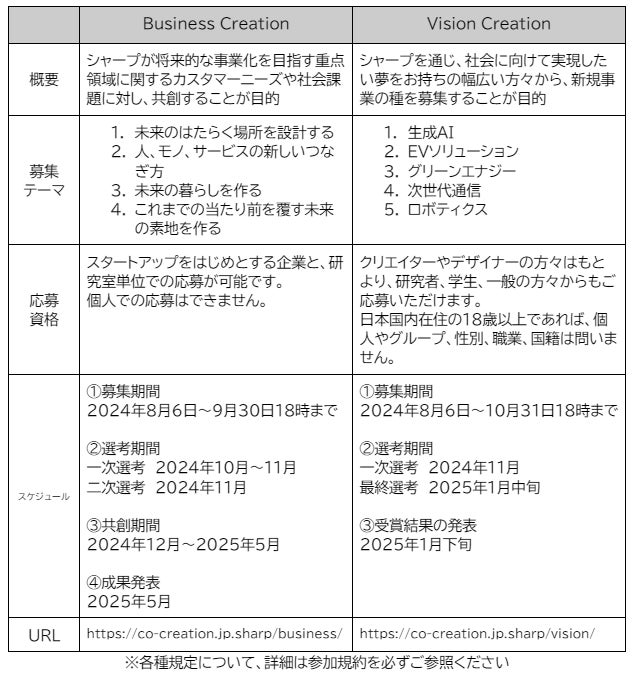 本プログラムは、シャープとしても初となる社外の方々を巻き込んだ事業共創プログラムです。本プログラムで注目すべき点としては、今あるアセットをかけ合わせることでスタートアップ企業との事業の共創を目指すBusiness Creationと、クリエイターの方々が描くクリエイティブな未来から革新的なアイディアを募集するVision Creationの二つの視点から網羅的に新規事業を共創しようとしている点にあります。