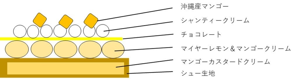 トロピカルな風味のマンゴーと爽やかな酸味のマイヤーレモンを組み合わせたクリームをたっぷり詰め込み、フレッシュな沖縄産マンゴーを贅沢にトッピング。みずみずしい果実の旨みが口いっぱいに広がります。軽い口当たりのシュー生地と、マンゴーの濃厚な味わいが織りなすハーモニーをお楽しみください。