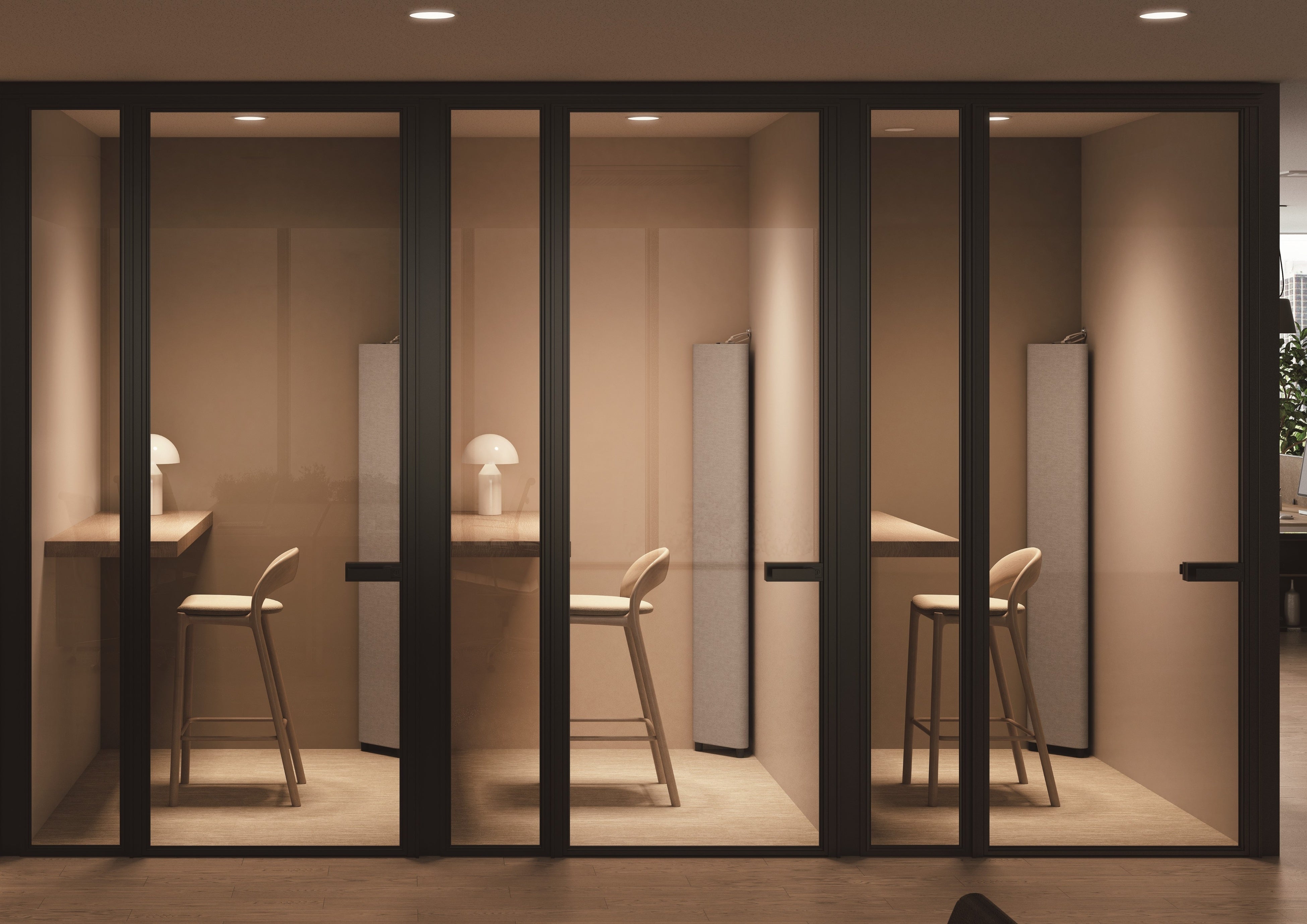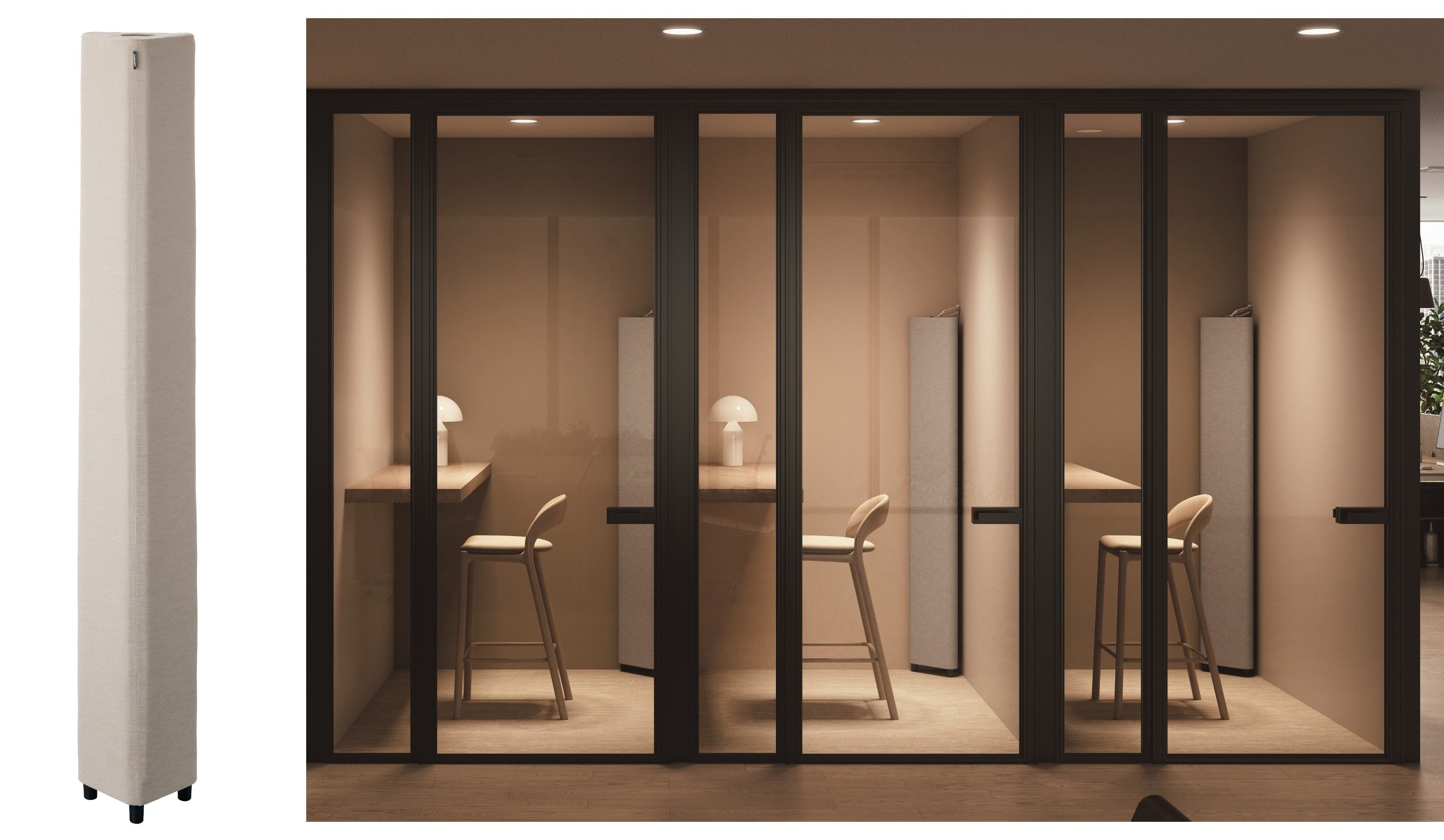 『コーナートーン』は、部屋の隅に収まりやすい三角柱形状により、狭い会議室や個室ブースでも、圧迫感なくご採用いただけます。