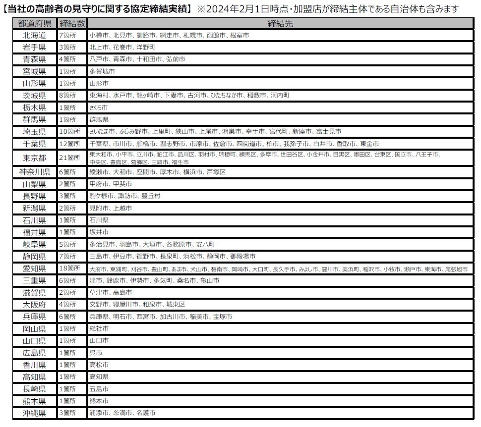 高齢者に密接な事業を展開する当社にとって、「高齢者の見守り」への取り組みは加盟店共々重要と考えています。今回の河内町との協定締結をはじめ、今後も各自治体等との連携を図りながら「すべてはご高齢者の為に」という想いの具現化に向けて、加盟店と一体となって取り組んでまいります。