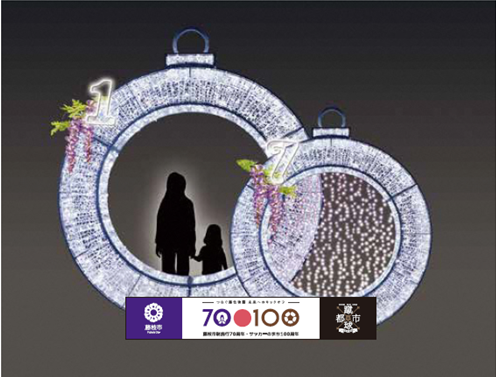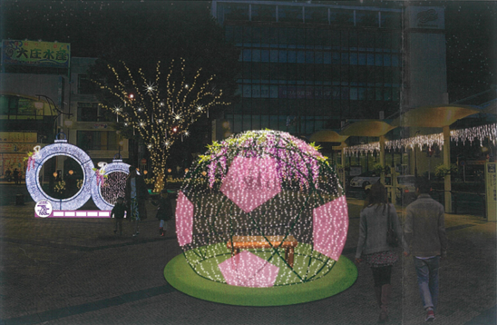 令和6年1月から始まる藤枝市制施行70周年・サッカーのまち100周年を広く周知し、市全体で機運醸成を図るため、JR藤枝駅周辺で開催中のルミスタ☆ふじえだにおいて、藤枝駅北口広場にモニュメントを設置します。