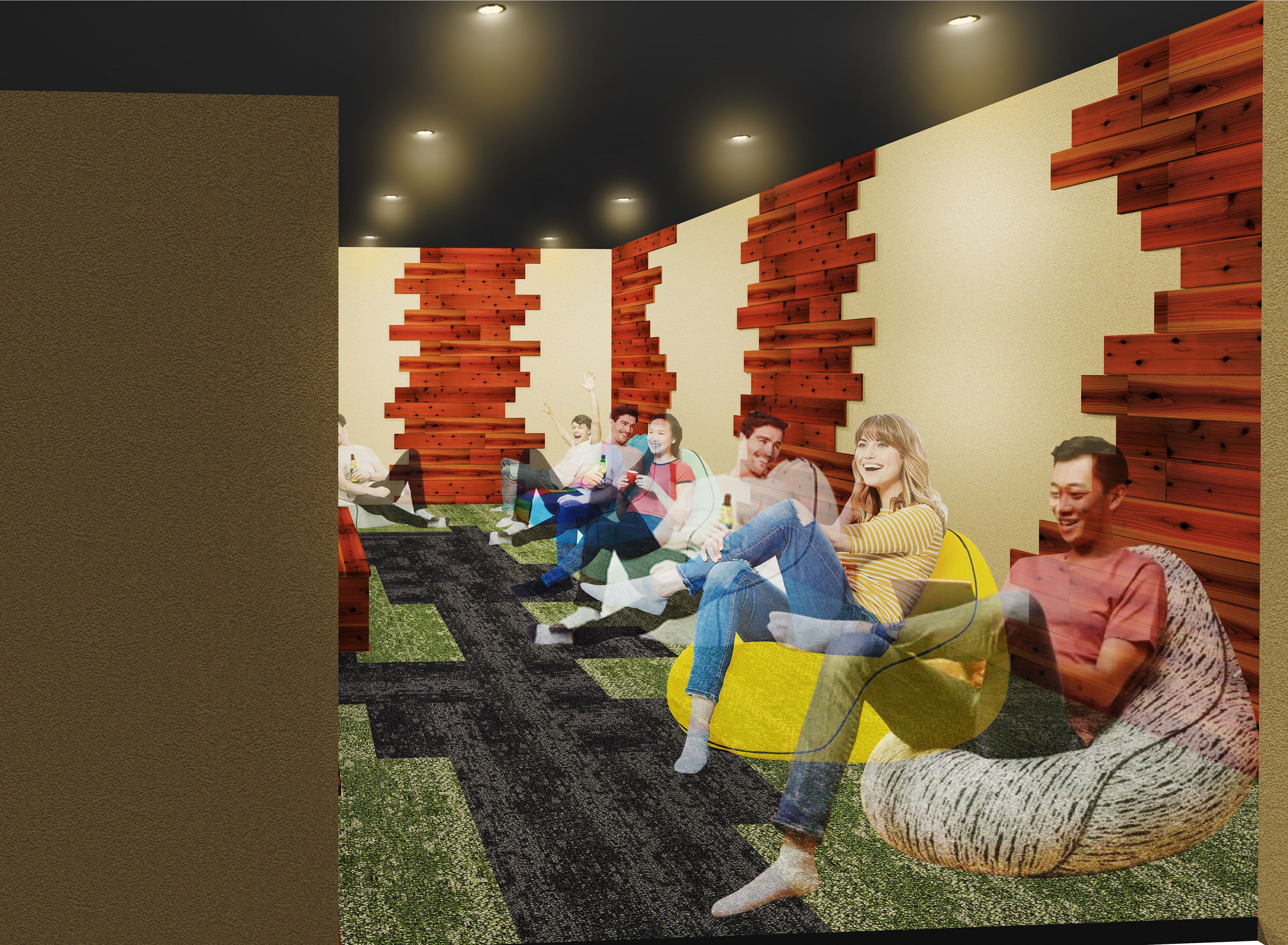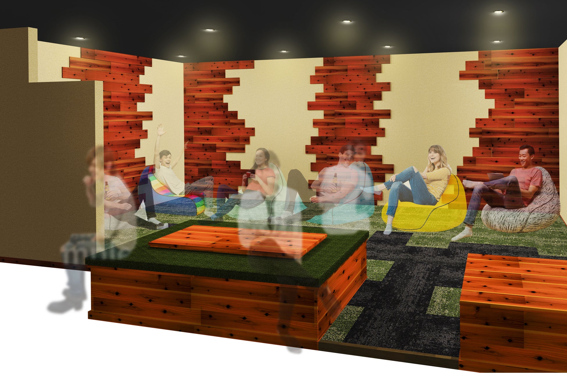 コロナ禍ではお客様の安全と快適さを最優先に考え、左右や対面に座る人との十分な距離を取るためにソファー席としていましたが、これを全て撤去し、代わりに自由に配置可能なyogiboクッションが導入されます。これにより、新たなオープンエリアが生まれ、カップルやグループでの会話といった、より開放的で自由な空間を楽しむことが可能となります。
