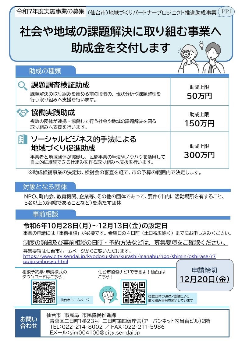 (URL)https://www.city.sendai.jp/kyodosuishin/kurashi/manabu/npo/shimin/oshirase/r7ppjjoseibosyu.html