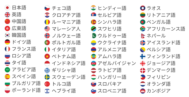 英語、中国語、フランス語、韓国語、ドイツ語、スペイン語などを始めとした合計138言語に対応し、世界200カ国以上をカバーしています。