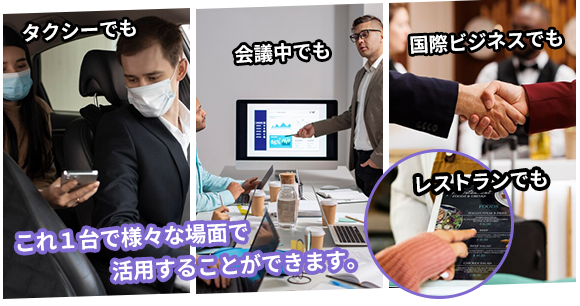 ②138言語対応!イヤホンとしても使え、通話や音楽も楽しめる。