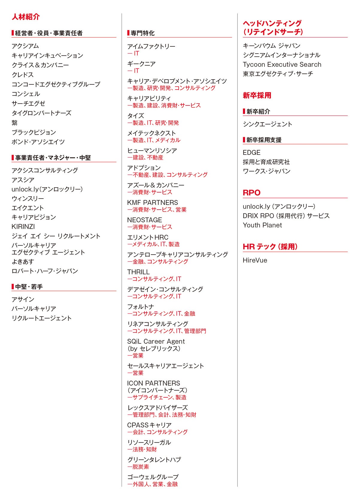 「⼈材コンサルティング会社&サービスガイド100選 2026年度版」選出会社&サービス名⼀覧