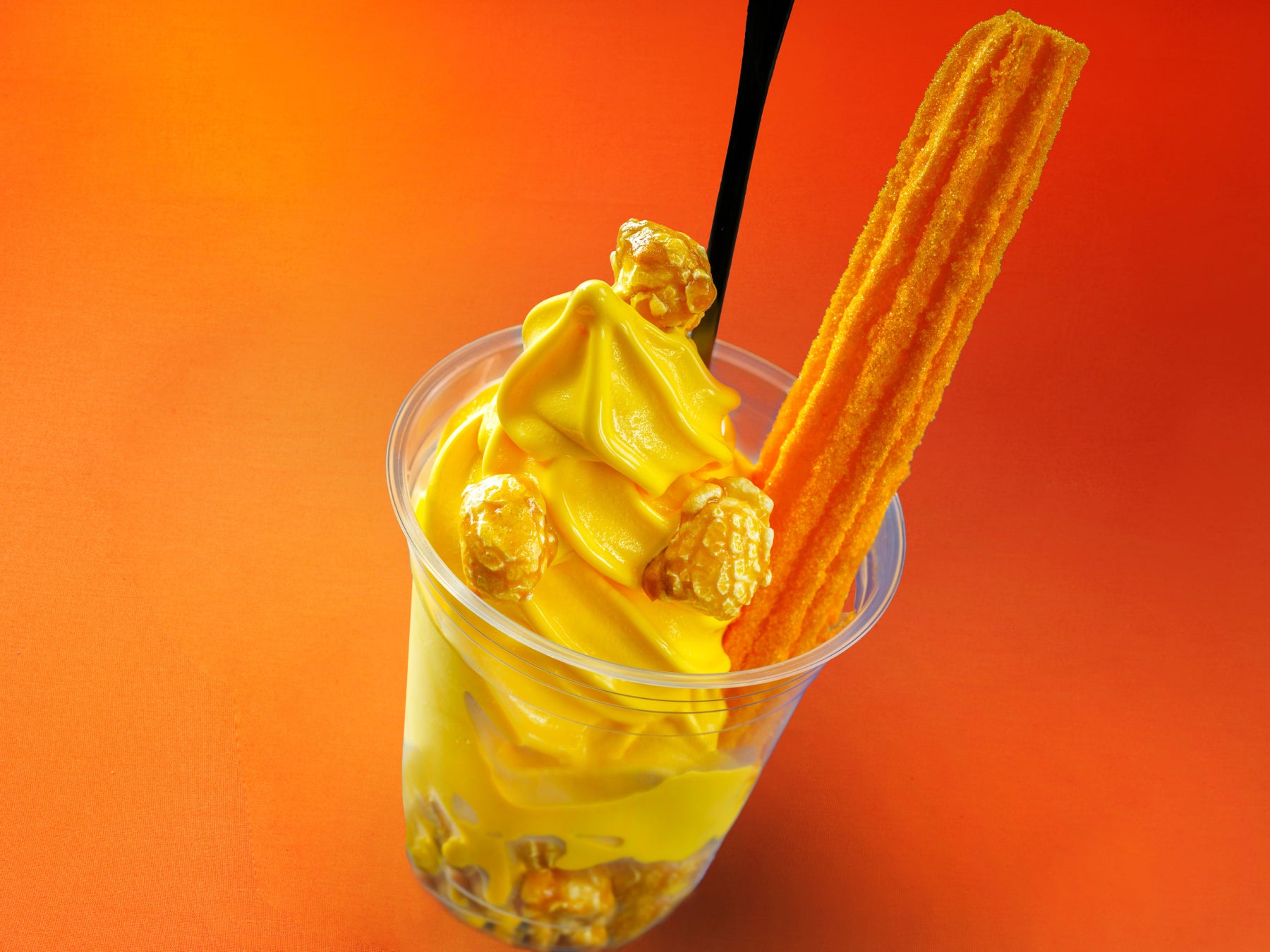 また、どちらのパークでも楽しめるハロウィーンサンデーが登場します。濃厚なパンプキンソフトクリームに、メイプルパンプキン味のチュロスとキャラメルポップコーンを添え、パークを代表するメニューを詰め込んだ、食べ応えたっぷりの一品です。