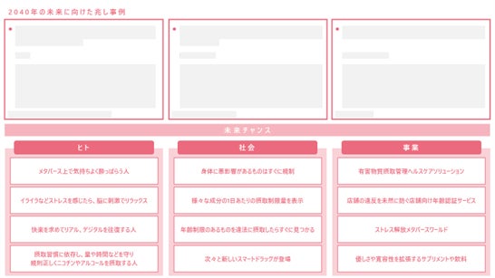 健康への悪影響が懸念される嗜好品が忌避される傾向が強まる中で、未来の快楽・癒やし・ストレス解消となる「新嗜好領域」など、昨年のリリース以降、未来のビジネスを考える際に重要と捉えた5テーマを新たに追加いたしました。