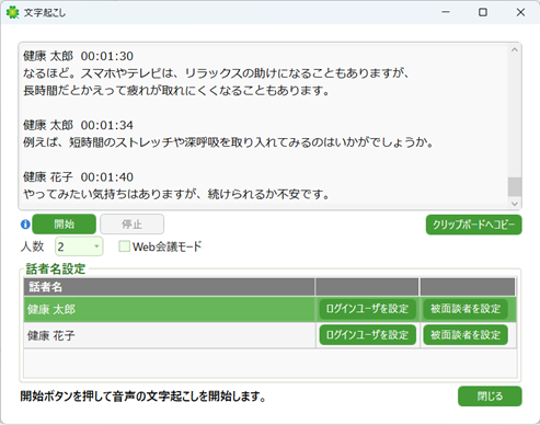 *2:NTTテクノクロスが提供するメディア処理AIソフトウェア「SpeechRec Server」の搭載により、複数話者の発話が重なった部分も正確にテキスト化することができます。なお、音声認識エンジンにはNTT人間情報研究所が開発した「MediaGnosis」を使用しています。(https://www.ntt-tx.co.jp/products/speechrec/server/)