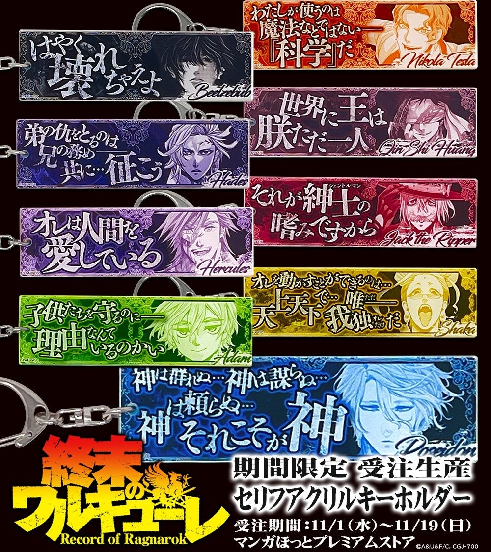 【受注開始!!】『終末のワルキューレ』&『魔女大戦』セリフアクリルキーホルダー発売!! マンガほっとプレミアムストアにて